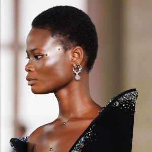 Seen on the runway: bold earrings worn solo, with hair pulled back and minimal makeup.