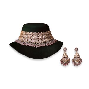 A refined polki choker with soft pink stone drops feels feminine but fierce.