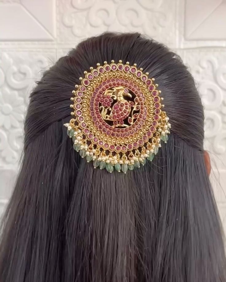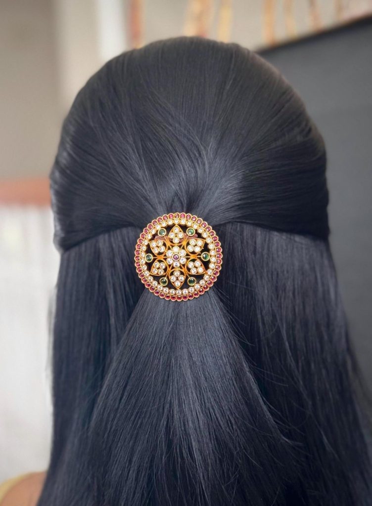 The circular temple hair pin by Navrattan Jewellers uses high relief carving to create shadow and dimension.