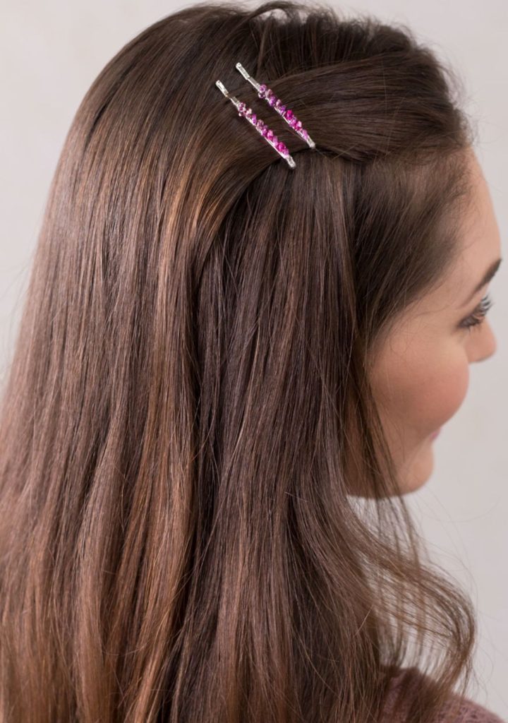 Slide it into a side part or above a low ponytail and let the geometry do the work.
