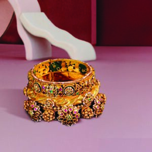 Gold has always been India’s canvas of choice, but when it is studded with rubies, pearls, or diamonds, it transforms into something bolder, more theatrical. This year’s standout bangles and bracelets show how heritage techniques can still deliver fresh, irresistible drama for the wrist. They don’t whisper tradition, they make it gleam with contemporary pride.